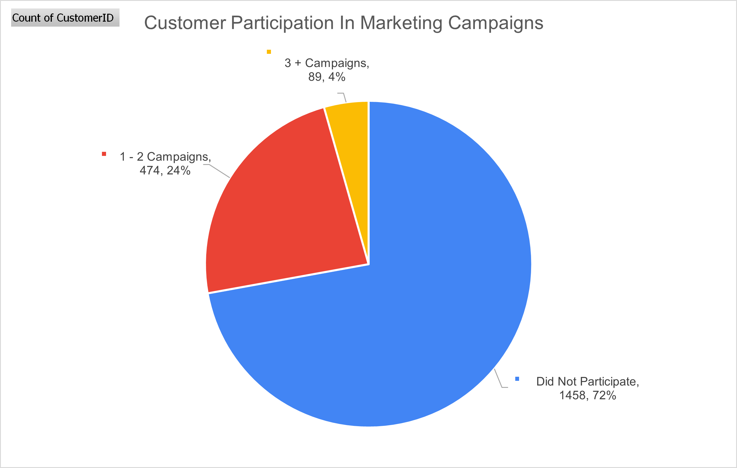Insight: This pie chart reveals that 72% of customers didn’t participate in any campaigns. This is a stark reminder that many customers are not engaging, prompting the need for more dynamic and targeted marketing strategies.