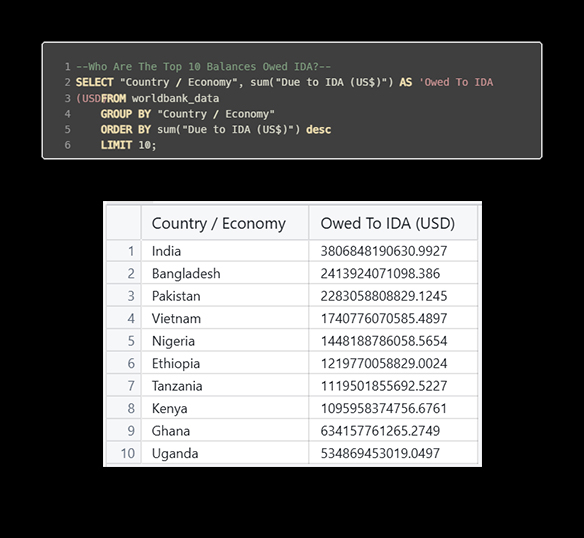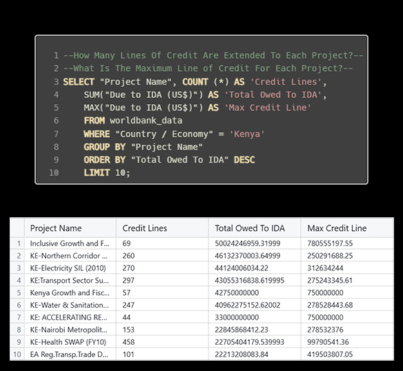 The idea for this project came from a simple goal: I wanted to practice and improve my SQL skills. I’ve always been interested in financial data, and with everything happening in Kenya, I started wondering how the aid money was actually being used. The International Development Association (IDA) Branch of the World Bank Group focuses on assisting low-income countries with grants and low-interest loans to improve lives and promote sustainable development, with a current focus on the 78 poorest countries. It wasn’t just about crunching numbers—it was about seeing how financial decisions affect a country going through a tough time.